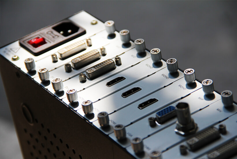 伯奧克新一代研發(fā)生產(chǎn)的多個(gè)模擬和數(shù)字矩陣整合于一個(gè)真正模塊化、可擴(kuò)展、可現(xiàn)場配置的高清混合矩陣。其最大的特點(diǎn)是采用插卡式機(jī)箱設(shè)計(jì),非常適合于在短的時(shí)間內(nèi),花費(fèi)較少的人力成本來安裝新的或替換已有的矩陣切換器板卡。從8、16、17、36、72、最大可配置為 144x144。可選擇HDMI、DVI、VGA&RGB、3G-SDI、CVBS、YPBPR、Fiber、HDBaseT 等接口形式作為輸入輸出,解決了視音頻會(huì)議項(xiàng)目中由于視頻信號(hào)源種類繁多,各種信號(hào)不兼容的困難,并最大程度的節(jié)省成本,利于系統(tǒng)升級(jí)、擴(kuò)容及維護(hù)。